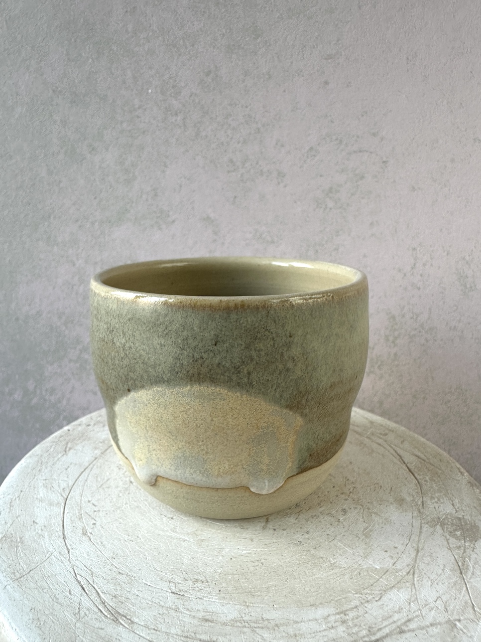 Zawsze zostawiam naturalną glinę na dole naczynia, tworzy to przyjemny kontrast z błyskiem na górze. W środku błyszczące transparentne szkliwo.