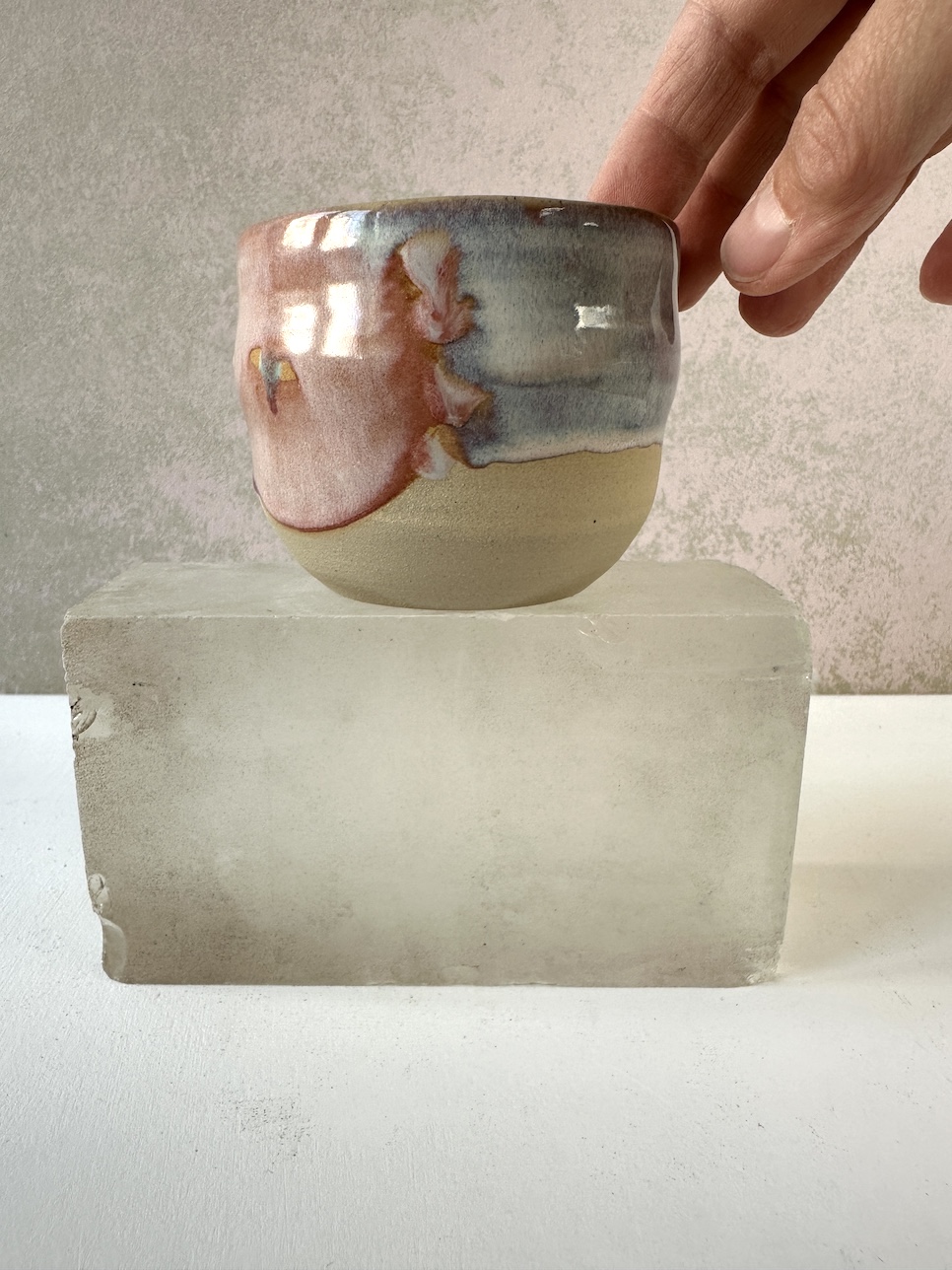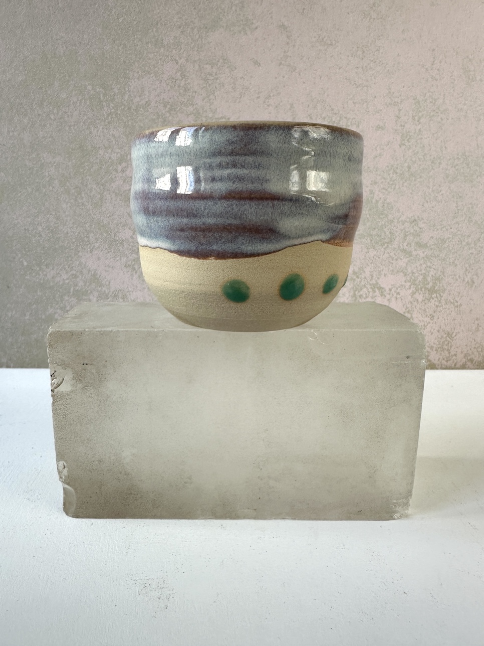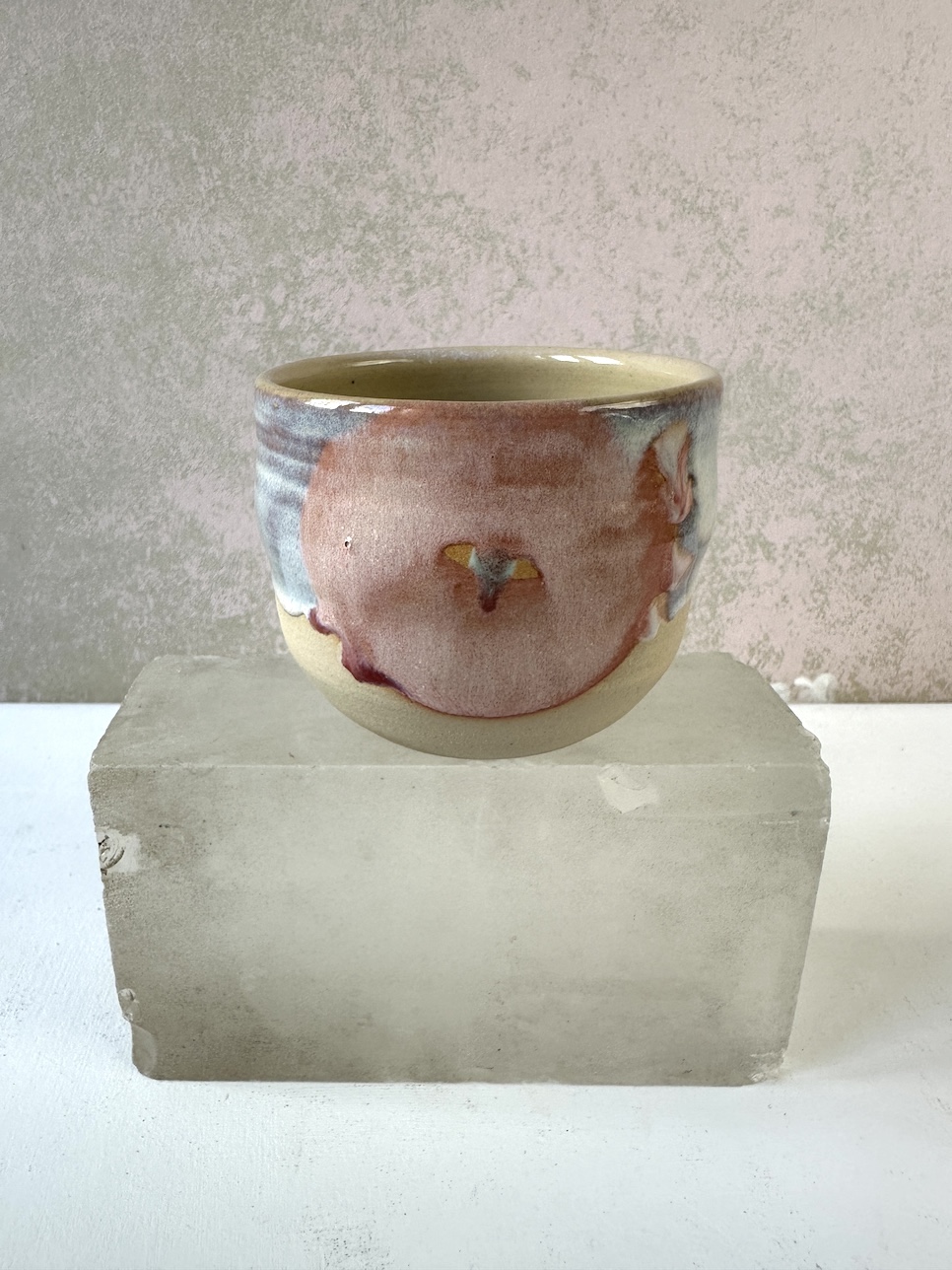 Kolekcja Przepływ - przy tych pracach eksploruję szkliwa, które mają tendencję do "płynięcia" w trakcie wypału. Łączę je z innymi, mieszam i sprawdzam granice materii. Powstają często szalone kompozycje kolorystyczne, zastygłe krople i przepływy. Trochę jak lodowiec, trochę jak lawa.