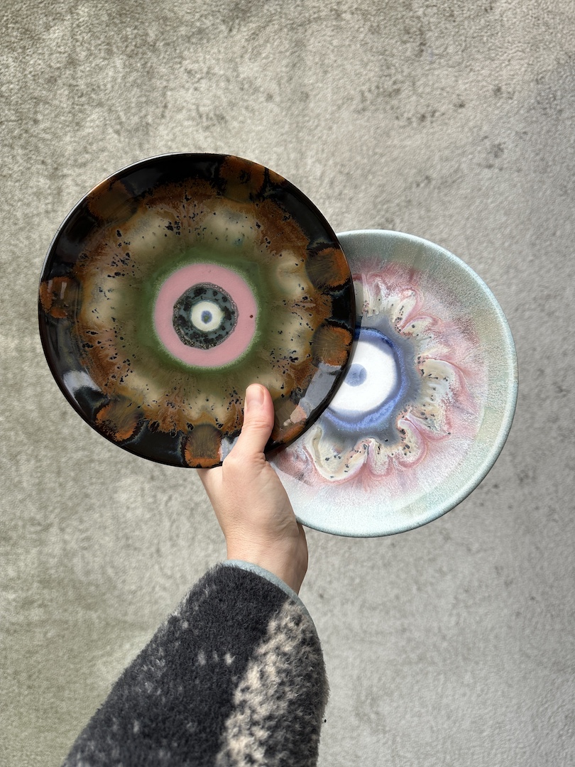 Każdy obiekt z tej galaktyki jest osobną, malarska opowieścią. Szkliwa łączą się, mieszają i przepływają swobodnie.
