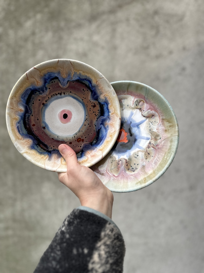 Każdy obiekt z tej galaktyki jest osobną, malarska opowieścią. Szkliwa łączą się, mieszają i przepływają swobodnie.