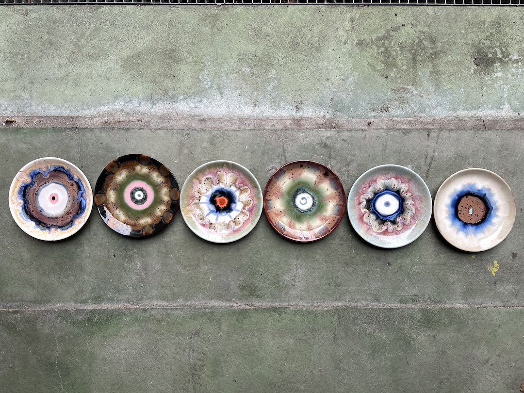 Każdy obiekt z tej galaktyki jest osobną, malarska opowieścią. Szkliwa łączą się, mieszają i przepływają swobodnie.